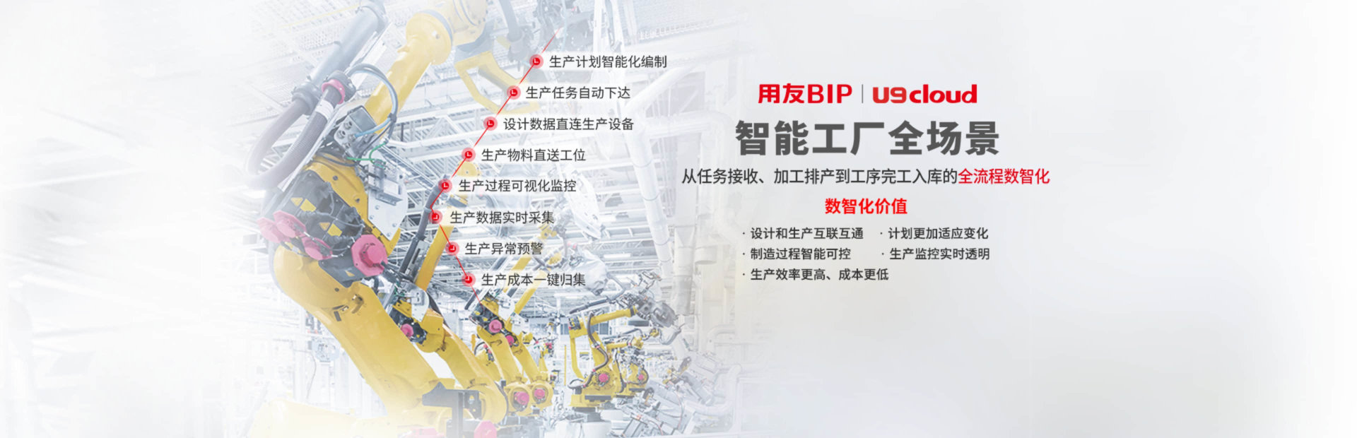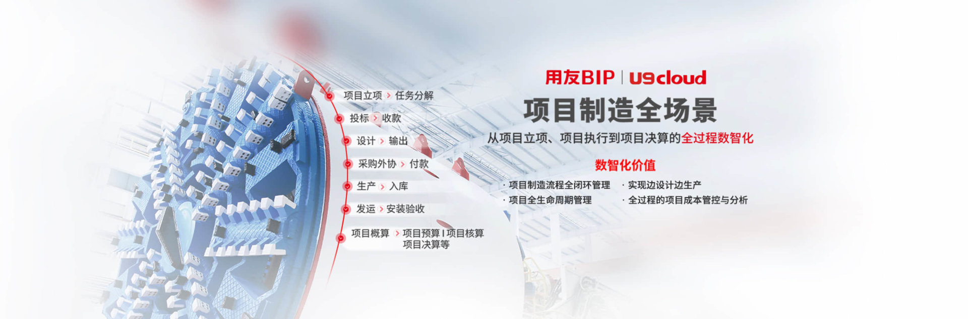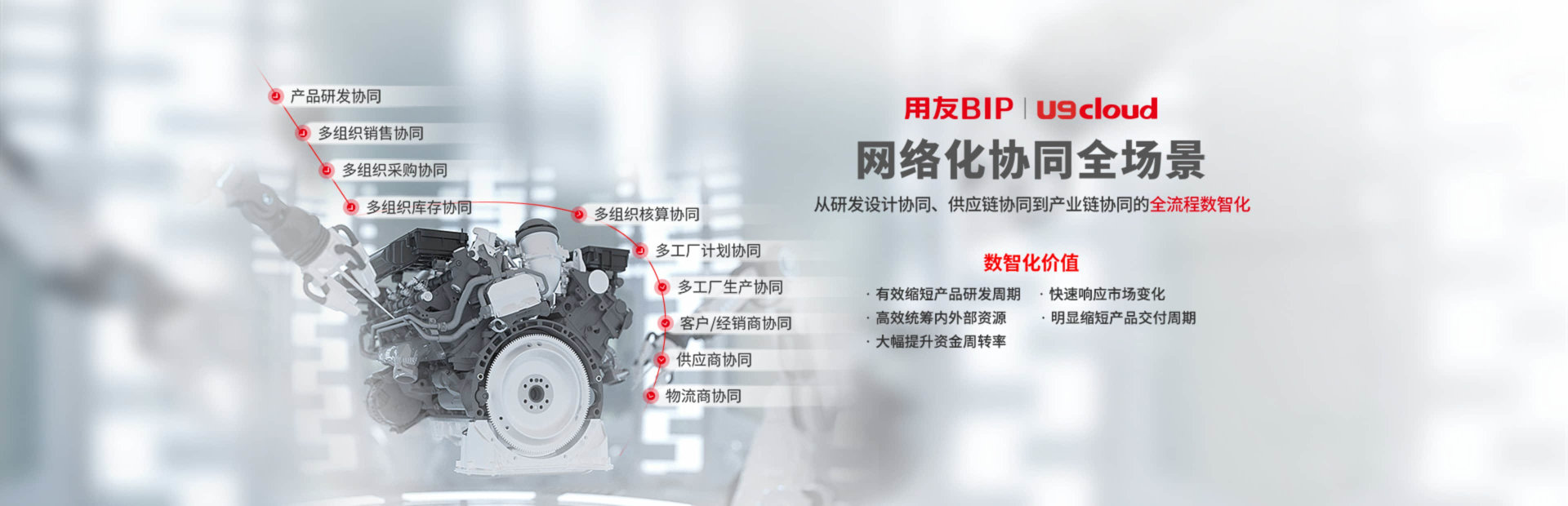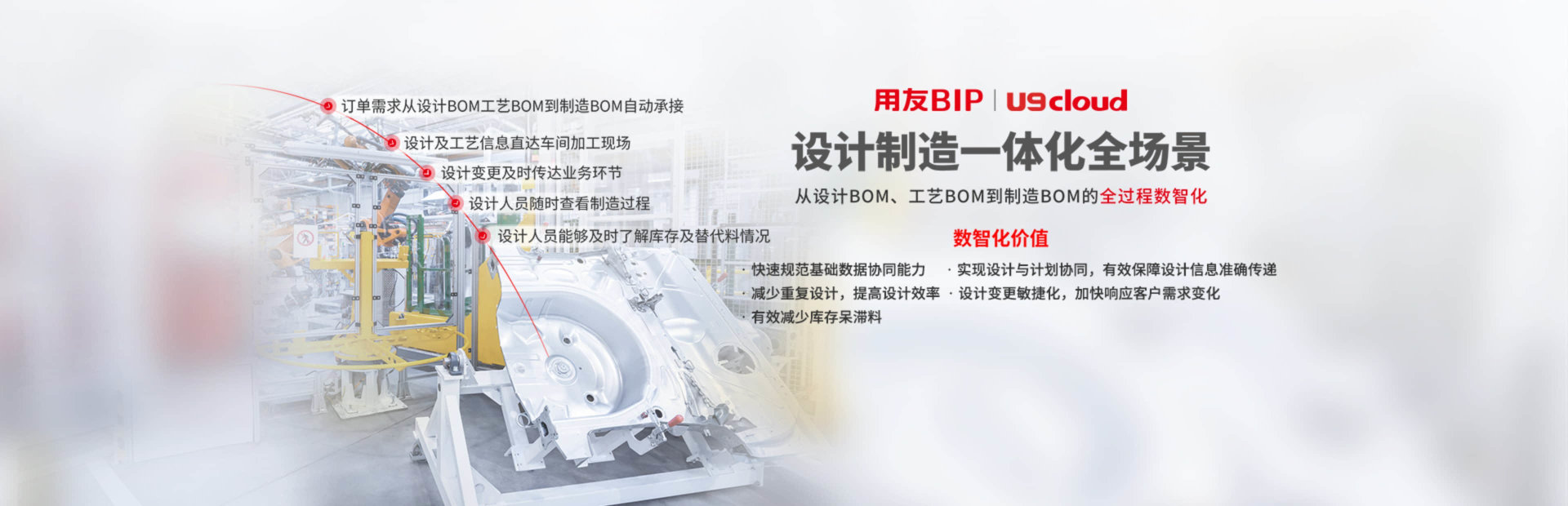U9cloud作为用友精智工业互联网平台的重要组成部分,采用最新数智化技术,全面融合PLM、智能工厂、AIoT、制造云、营销云等服务,构建互联互通的智能制造体系。